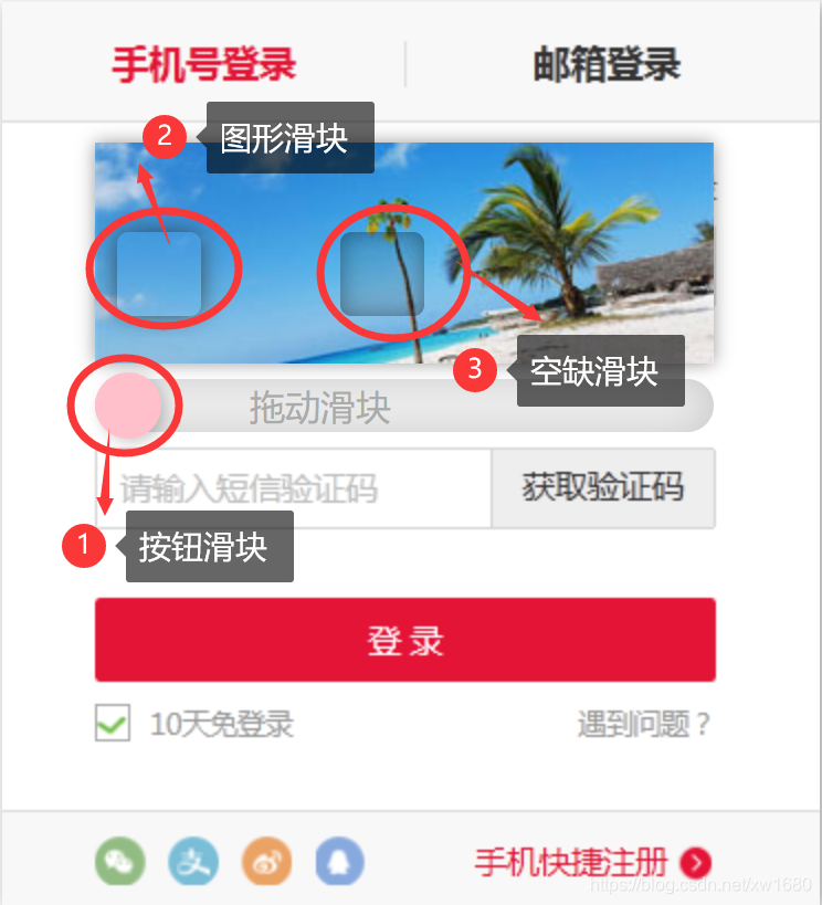 (1) 使用浏览器打开测试网页的地址,将显示如下图所示的滑动拼图验证码。